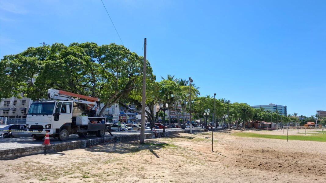 A Secretaria de Serviços Públicos de Araruama deu início a uma ampla operação de modernização da iluminação em toda a orla do Centro. O trabalho consiste na retirada dos antigos sistemas de vapor metálico e na instalação de novas luminárias em LED, garantindo mais eficiência, segurança e economia para a região.
